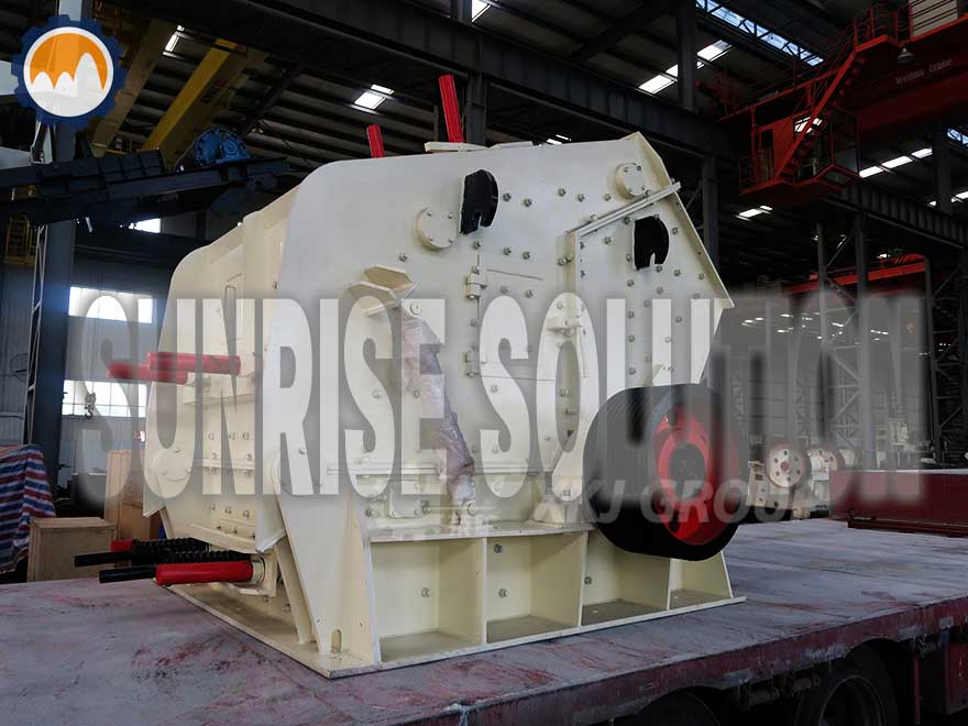When the impact crusher is working, the motor drives the rotor through the V-belt, and the material is crushed by the high-speed impact of the hammer on the rotor, and is thrown to the impact bracket to break again, and then bounce from the impact surface to the impact area of the hammer again. Crushing, this process is repeated until the material is crushed to the required size. The material flows from the first feed port to the first crushing chamber, and then into the second crushing chamber. When the crushed ore particle size is smaller than the gap between the hammer head and the impact plate, it will be discharged from the lower part of the machine, which is the crushed ore. product. This machine adopts a self-weight safety device on the rear rack. When the non-broken objects enter the crushing chamber, the front and rear counter-attack frames will retreat, and the non-broken objects will be discharged from the machine body.