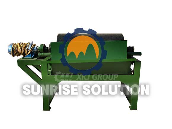When the slurry enters the magnetic field area through the feeding hopper, the strong magnetic minerals are absorbed on the surface of the cylinder, while the weak magnetic and non-magnetic minerals are washed out by the water flow, while the magnetic minerals adsorbed on the surface of the cylinder rotate with the cylinder and are taken out of the magnetic field area, and the washing water is used to flush into the concentrate tank to complete the separation.