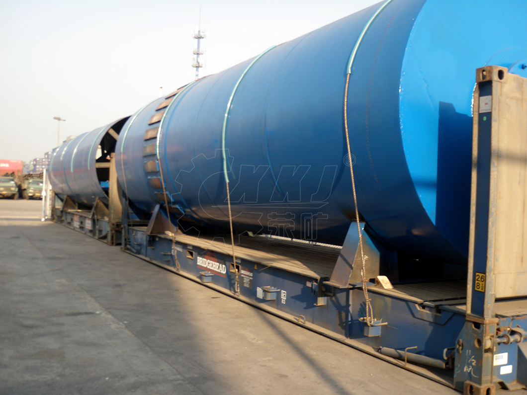 The barrel of the large-scale rotary kiln is rolled from steel plates. The barrel is lined with refractory lining and has a specified slope with the horizontal line. It is supported by three wheel belts on each support device. A large ring gear is fixed on the inner cylinder with a tangential spring plate, and a small gear meshes with it below. During normal operation, the main drive motor transmits power to the open gear device through the main reducer to drive the rotary kiln.